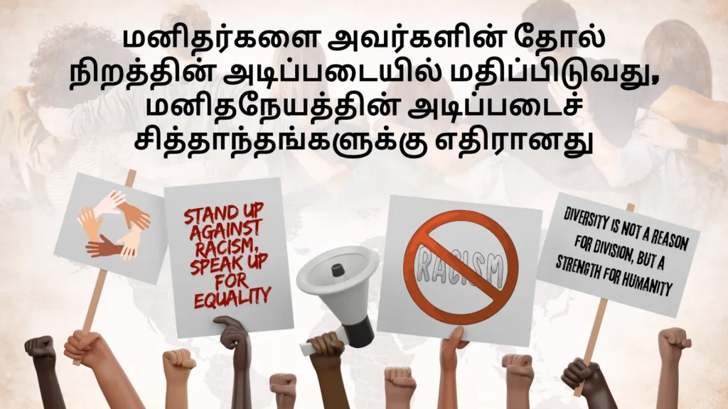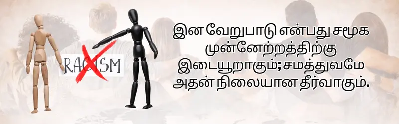 முடிவில், இன அடிப்படையிலான பாகுபாட்டை ஒழிப்பது அரசுகள் அல்லது அமைப்புகளின் பொறுப்பு மட்டும் அல்ல; அது ஒவ்வொரு மனிதரின் கடமையும் ஆகும். நாம் அனைவரும் ஒரே மனித இனத்தைச் சேர்ந்தவர்கள் என்பதை உணர்ந்து, பரஸ்பர மரியாதையுடன் வாழ வேண்டும். அப்போதுதான் உண்மையான அமைதியும், சமத்துவமும் நிறைந்த உலகை உருவாக்க முடியும்.