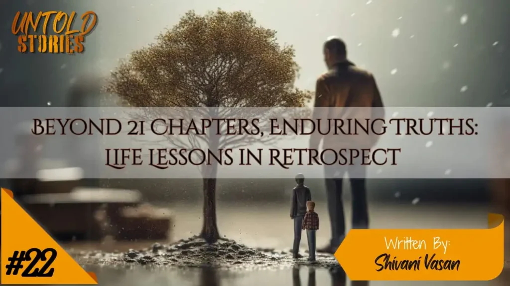 Also finally, I also understood that planning the work and working the plan is crucial to succeed in life. Make plans in life and work to achieve them. Furthermore, I was depressed and exhausted by comparing my lifestyle with others until I understood that everything happens for a reason. Now I take a chance to be thankful to the god for giving me “Life Inspired by Lessons”. Ample experiences and examples knocked on me to learn about people, life, and reality. Coming back to the title “Beyond 21 Chapters,” I am almost 21 today, whereas at a very young age I had the opportunity to understand life retrospectively to lead a systematic and planned life prospectively. From depression to enduring truths, I feel myself as a proud and privileged individual at this age. “Life is a rough slab of marble, not a soft bed of moss.” The challenges we encounter are like the blows of a chisel, not meant to hammer us. The only people who become masterpieces are those who lean into the sting of the stone and break the jagged edges of their own fear.