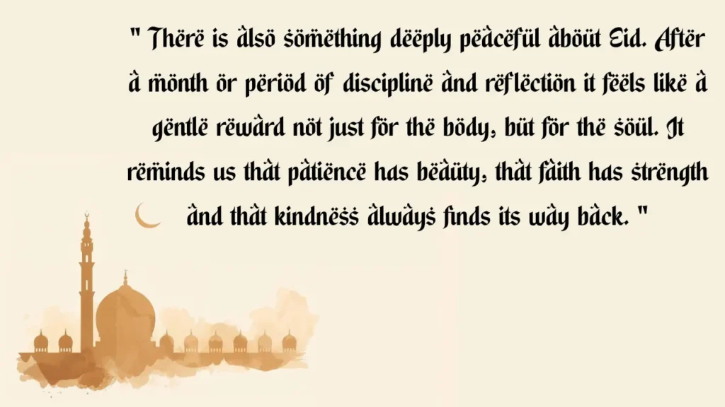 There is also something deeply peaceful about Eid. After a month or period of discipline and reflection it feels like a gentle reward not just for the body, but for the soul. It reminds us that patience has beauty, that faith has strength and that kindness always finds its way back.