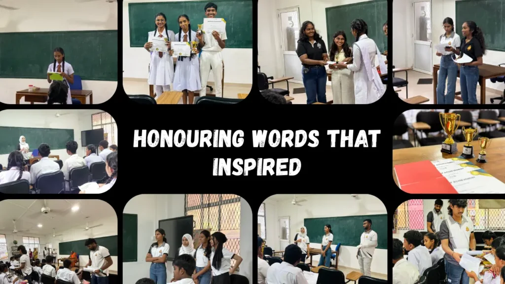 The first and second phases was carried out in Vijayaba Maha Vidyalaya whereby grade 11 students were chosen to be the participants. The competition was organized by the team, with the introduction of all the topics, the number of words and the evaluation criteria being clearly stated. Students had a chance to clarify their doubts which motivated them to participate and show interest.