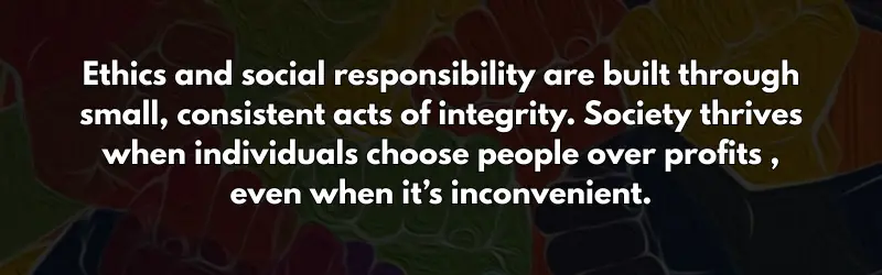 Ethics is not about perfection. Humans are flawed, influenced by bias, emotion and social pressure. The presence of peer influence, role models, or group dynamics can significantly alter moral behavior. Social responsibility therefore requires courage the willingness to divert when a group moves in the wrong direction, to question harmful normsand to stand firm in one’s principles.