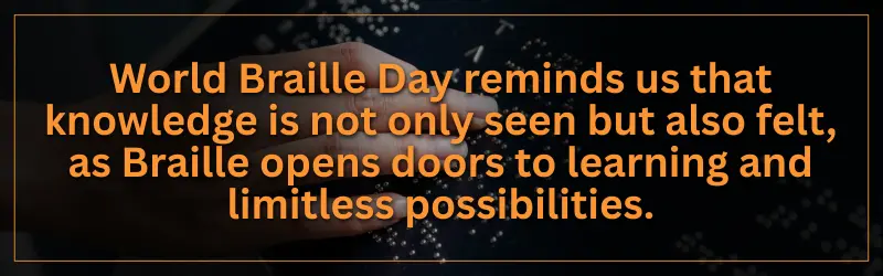 Braille didn’t fall behind. It adapted. More Than a System , It’s a Voice World Braille Day is not just about honouring a writing system. It’s about recognizing People, their intelligence, independence, and right to equal participation in society. It’s about students who read textbooks with their fingertips. Professionals who sign contracts independently. Readers who fall in love with stories one dot at a time.